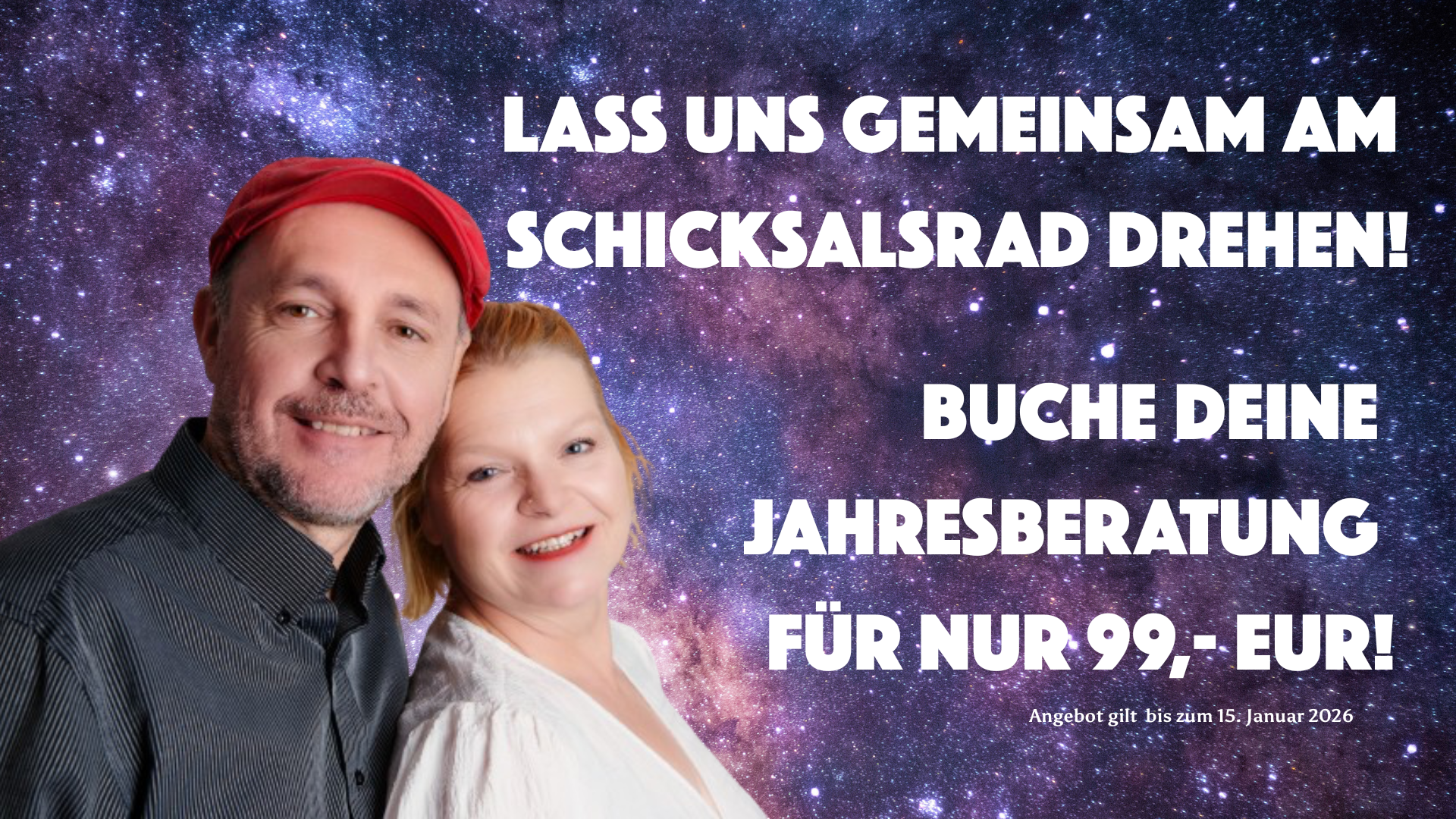 Zum Sonderpreis von 99,- EUR (inkl. MwSt.), buchbar vom 15. November 2025 bis 15. Januar 2026, erhältst du deinen maßgeschneiderten Ausblick auf das neue Jahr – voller Erkenntnisse, Impulse und magischer Synchronizitäten.